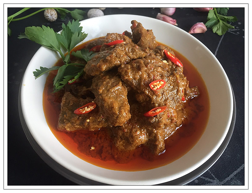 Laat de rendang gedurende 2,5 uur zachtjes stoven.